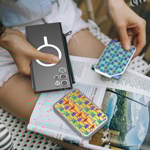 This charger and card holder set keep giftees’ phones charged on the go, making your brand a part of their everyday routine. It includes a magnetic wireless phone charger with a kickstand, paired withs a slim magnetic card holder.